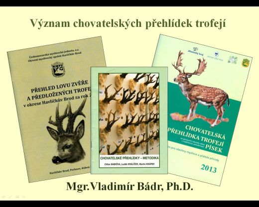 Některé z přednášek máme orientovány i ke konání chovatelských přehlídek trofejí, k zásadám chovu zvěře, ke stanovení kriterií chovnosti, apod.